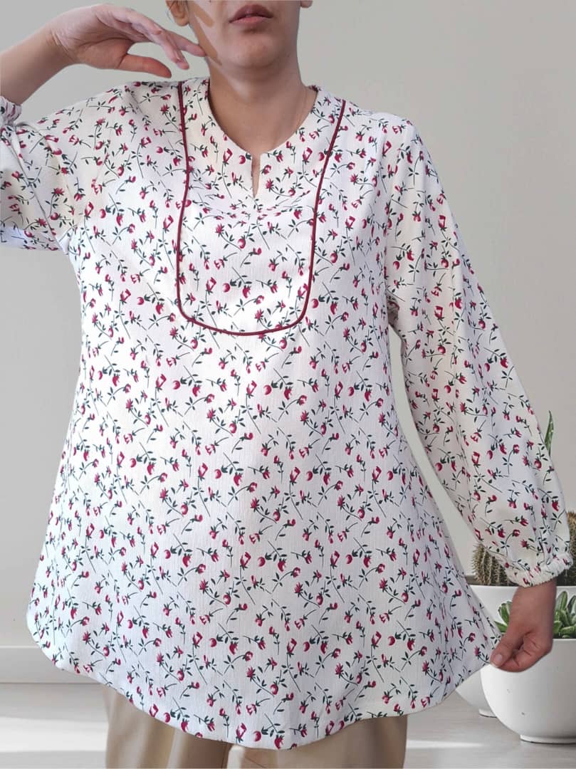 مشخصات شومیز لیلیوم: جنس: لینن وارداتی آبرفت: ندارد گلدوزی: دارد جدول سایز مدل: فری سایز قد جلو: ۷۰ سانتیمتر