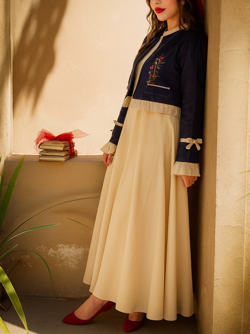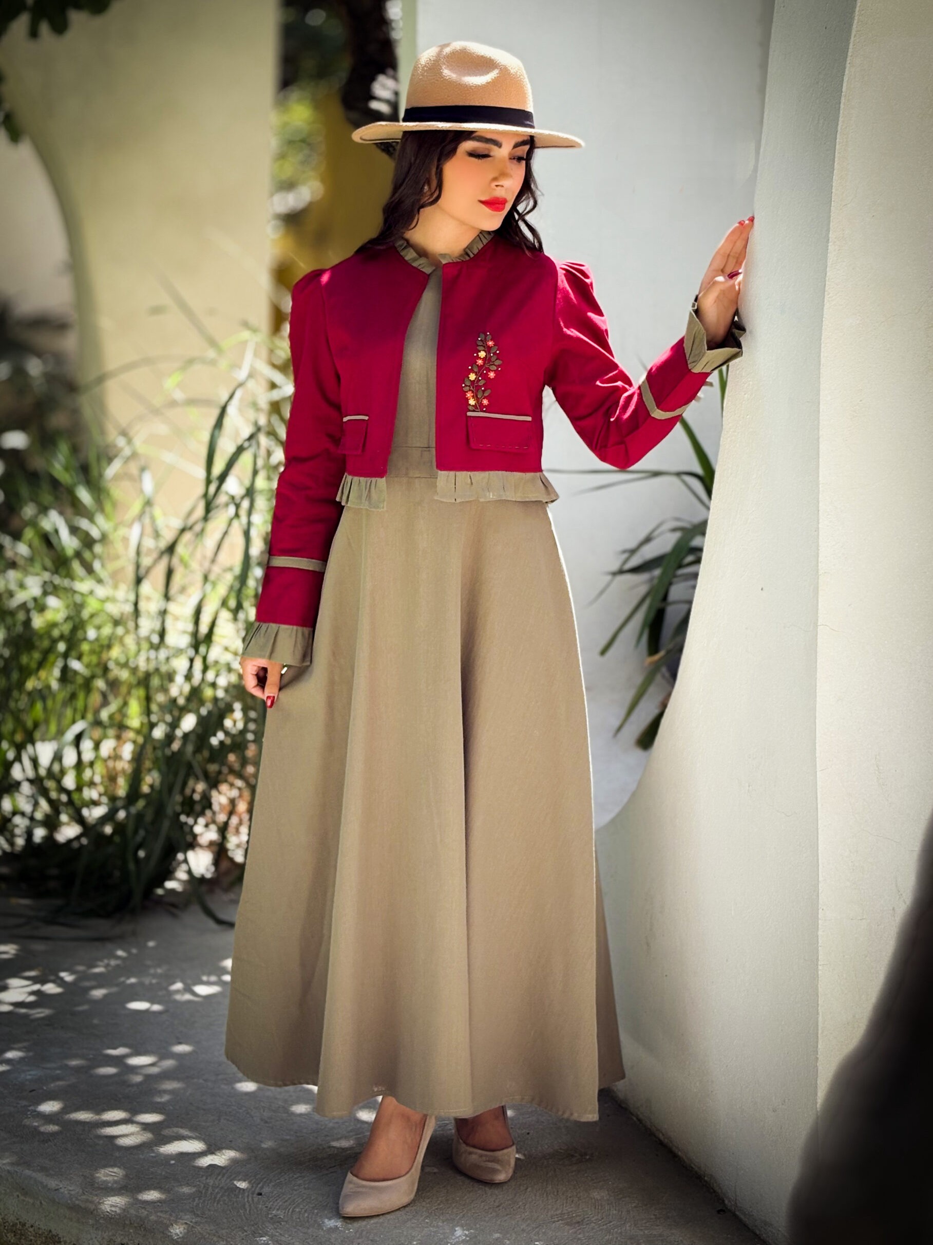 مشخصات آفتابگردون: جنس: لینن اسلپ کمربند: دارد گلدوزی: دارد جدول سایز مدل: فری سایز در دو قواره قد: ۱۲۷