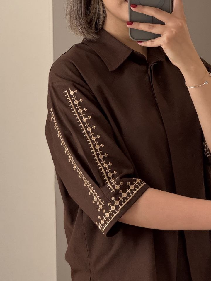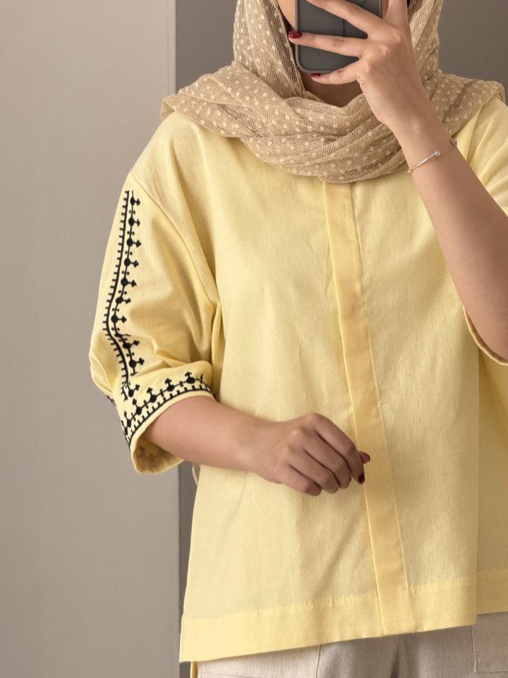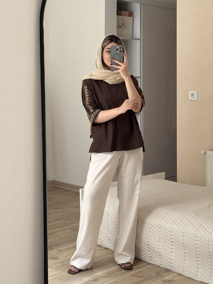 مشخصات شومیز لیلیوم: جنس: لینن وارداتی آبرفت: ندارد گلدوزی: دارد جدول سایز مدل: فری سایز قد جلو: ۷۰ سانتیمتر